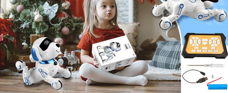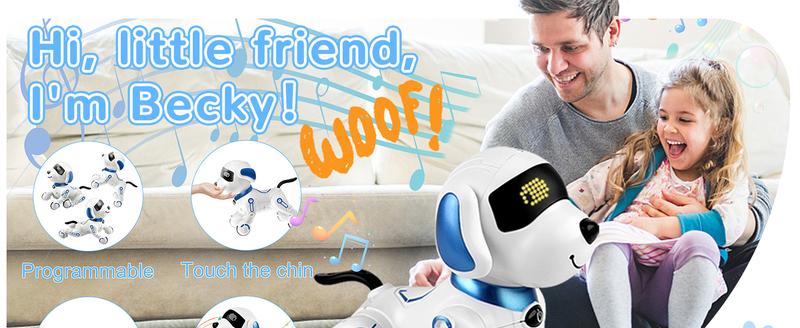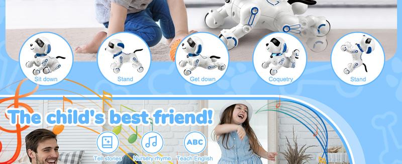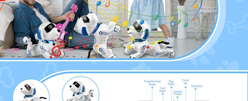 Through the remote control, you can make the electronic robotic dog perform a variety of lifelike actions. By touching the pet robot chin, it will respond with different adorable actions and sounds.