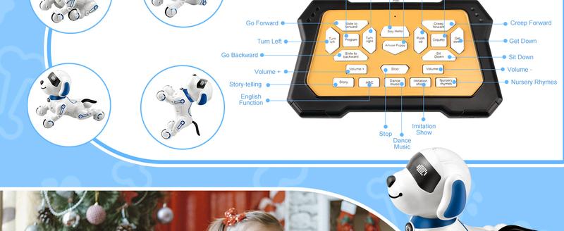 Our smart remote control dog is a multi-functional early education companion that can tell stories, sing nursery rhymes, dance, teach English, and imitate 6 different animal sounds, providing children with diverse learning and entertainment experiences